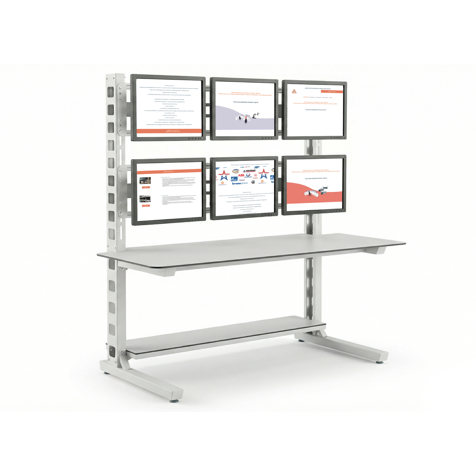 Современные диспетчерские центры, пункты управления и посты видеонаблюдения требуют профессионального подхода к организации рабочего пространства. Особое значение имеет размещение мониторов — от этого зависит эргономика, эффективность работы и безопасность оператора. Представляем универсальную стойку для мониторов ArmTechno с наклонно-поворотными кронштейнами, столешницей и полкой для оборудования, которая сочетает в себе максимальную функциональность, надежность и адаптивность под различные задачи.